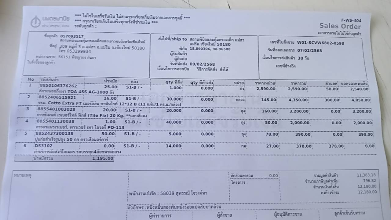 - รับแจ้งปัญหาจากแผนกจัดส่งพบว่ามีการเข้ามารับสินค้าแล้วไม่ได้สินค้าเนื่องจากคลังไม่ได้มีการจัดสินค้ารอทำให้เสียเที่ยวในการจัดส่งสินค้า ตรวจสอบพบว่าเอกสารเป็นหัว SCV ขายงานราชการสถานพินิจและคุ้มครองเด็ก แม่สา อแม่ริม จ.เชียงใหม่ ไม่สามารถจัดทำเอกสารใบขอรับสินค้าได้จึงทำให้คลังสินค้าไม่ได้มีการจัดสินค้ารอจึงขอให้ทางแผนกคอมพิวเตอร์ร่วมจัดการแก้ไขปัญหาที่เกิดขึ้น