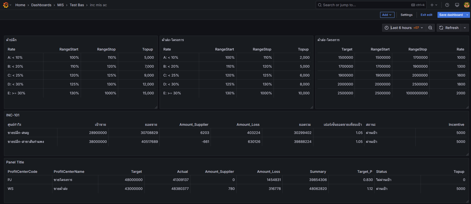 Link Dashbroad สำหรับติดตาม ยอดขายเทียบเป้า แต่ละศูนย์กำไร