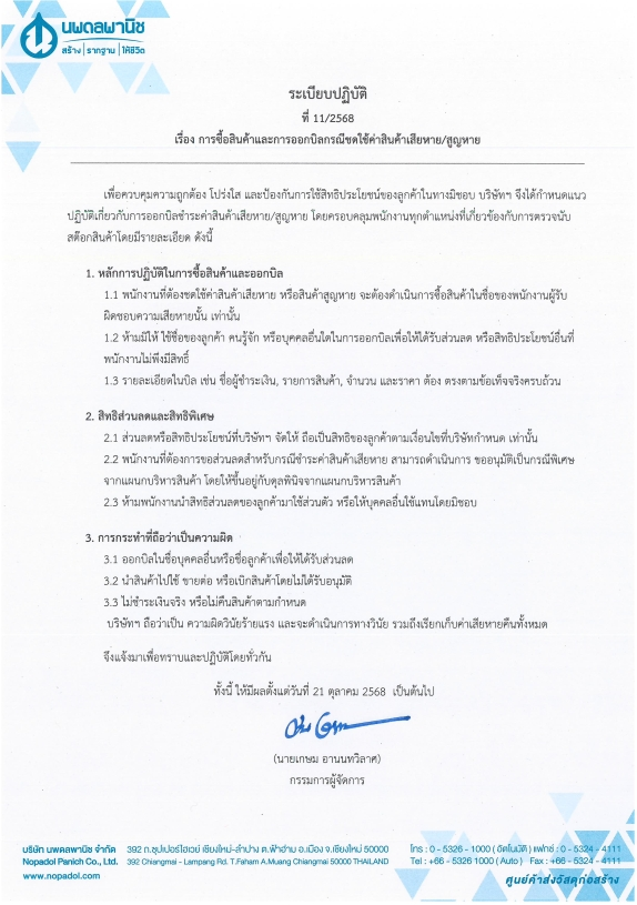 เมื่อพนักงานต้องรับผิดชอบความเสียหายสต๊อกยังไม่มีแนวปฎิบัติหรือมาตรการห้ามพนักงานออกบิลในนามลูกค้าหรือบุคคลอื่น |