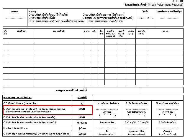 • แบบฟอร์มใบขอปรับปรุงสินค้า