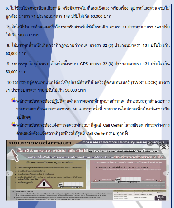 4.) เส้นทางการขนส่งสินค้าให้วิ่งตามเส้นทางที่กำหนด หากไม่จำเป็นไม่ควรออกนอกเส้นทางและห้ามนำ รถที่บรรทุกสินค้าไปจอด
