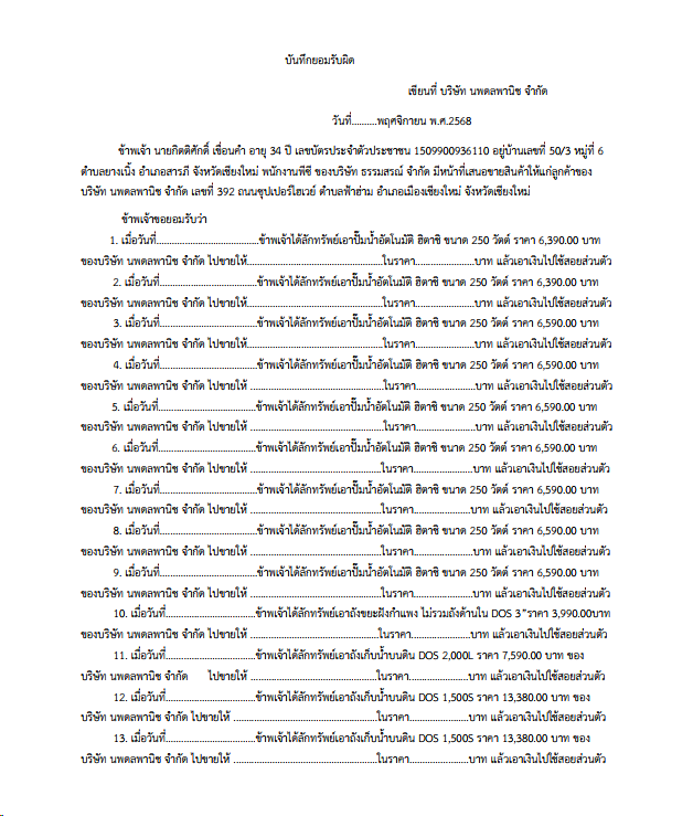 3.3 เอกสารรับสภาพหนี้: เอกสารที่ใช้ยืนยันว่าพนักงานยอมรับค่าเสียหายที่เกิดขึ้น