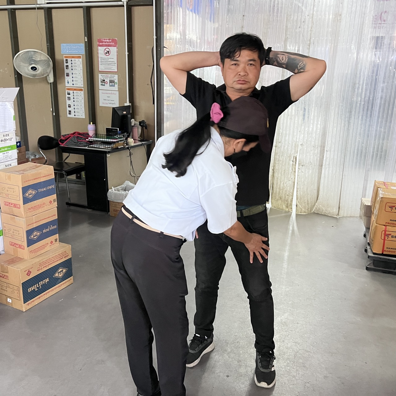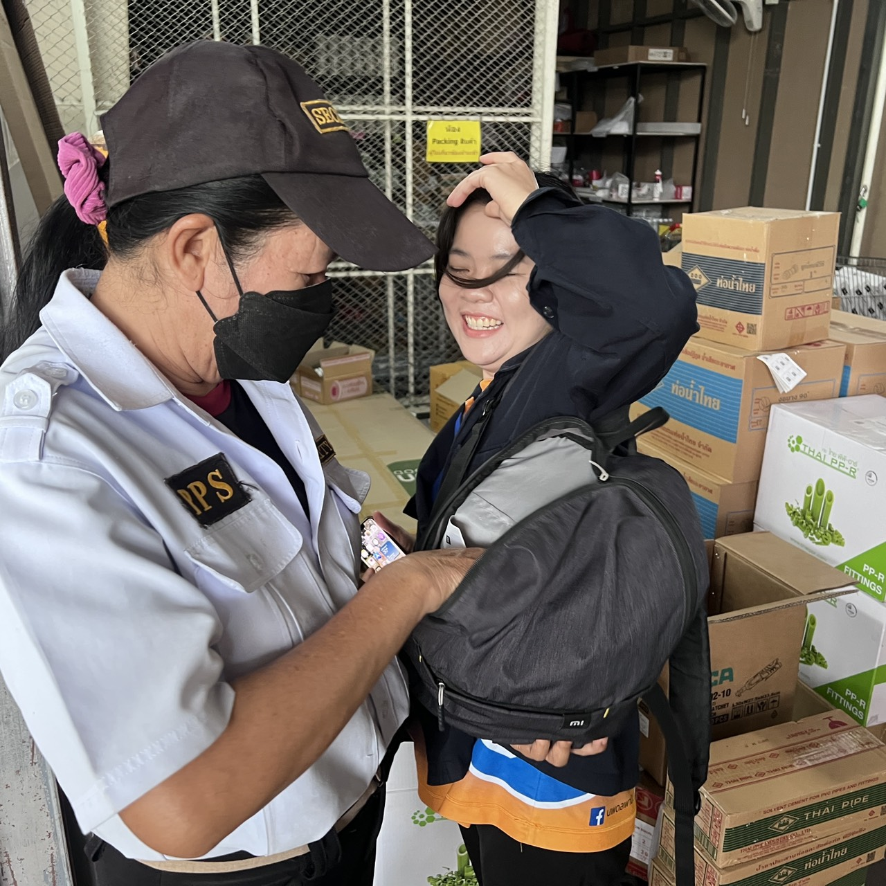 - ค้นตัวพนักงานออกมาพักเที่ยงและตรวจประเป๋าหลังเลิกงาน