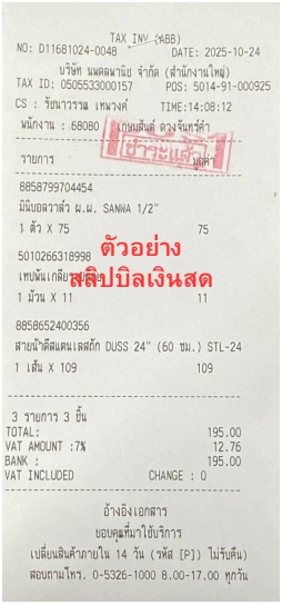 ขอให้ลูกค้าแสดงใบเสร็จรับเงิน