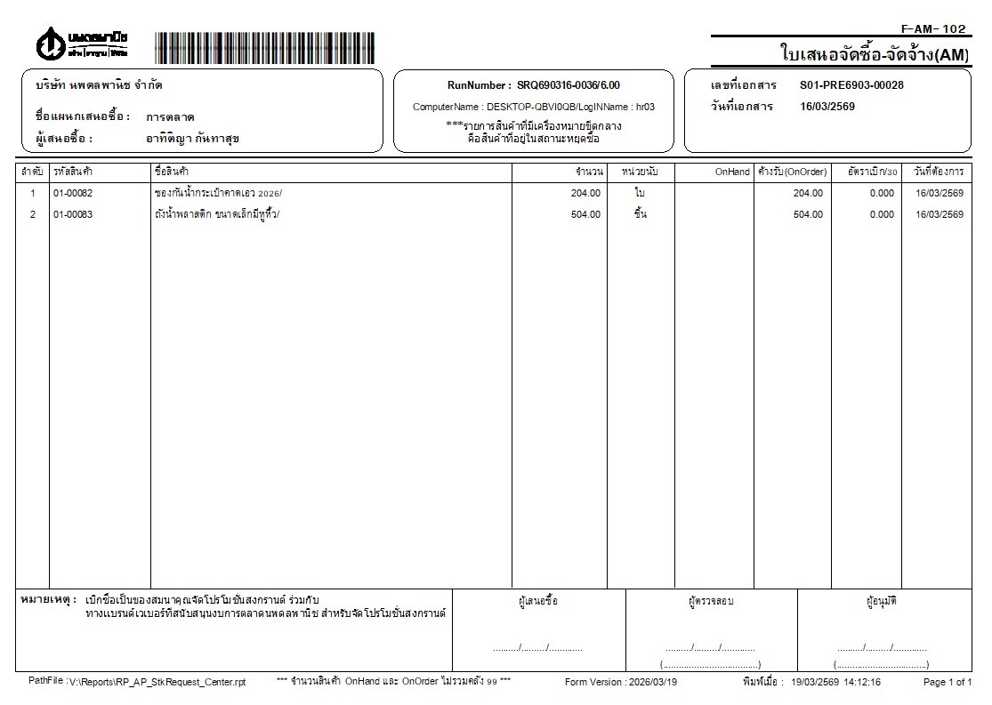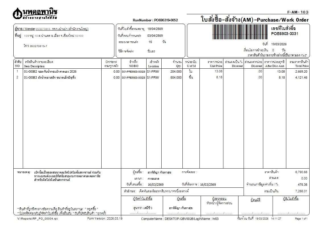 4. ให้จัดซื้อจัดจ้างเปิด PO เพื่อยืนยันการสั่งซื้อ (ต้องมั่นใจว่าจะซื้อเเละต้องมีราคาที่เเน่ชัด)