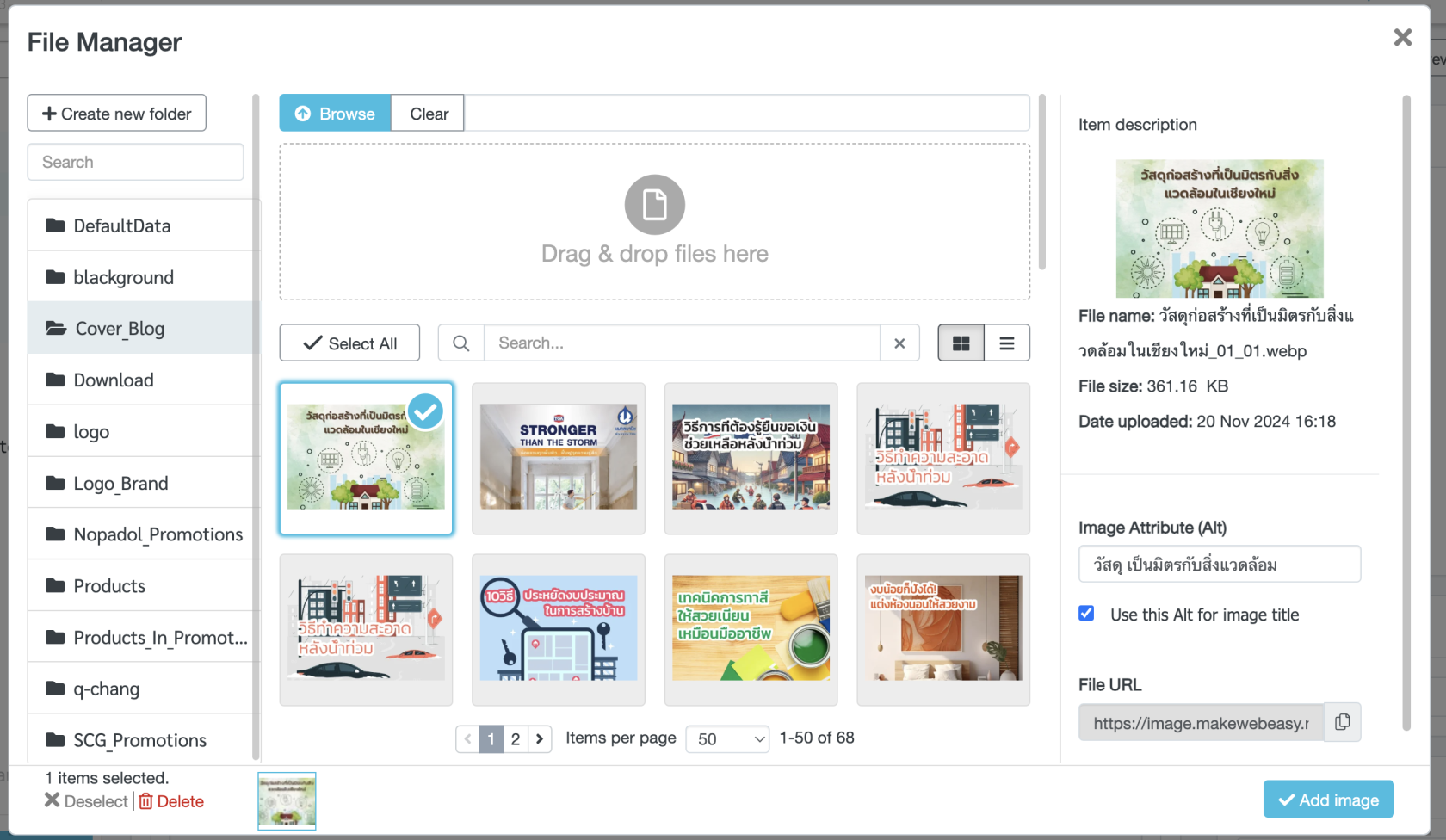 - กด Add Cover image จะขึ้นหน้าต่างตามภาพ