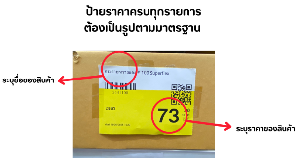 ไม่ผ่าน : ไม่มีป้ายราคา / ป้ายราคาไม่ครบ / ป้ายราคาไม่ตรงตามมาตรฐานที่กำหนด