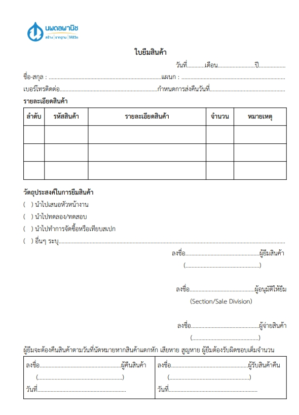แบบฟอร์มเบิก–คืนสินค้า (FM-…) Link แบบฟอร์มการยืมสินค้า