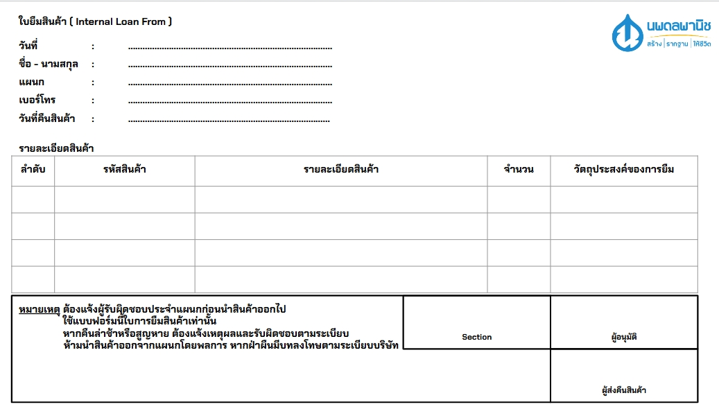 ห้ามยืมสินค้าโดยไม่กรอกแบบฟอร์มหรือไม่มีลายเซ็นอนุมัติ