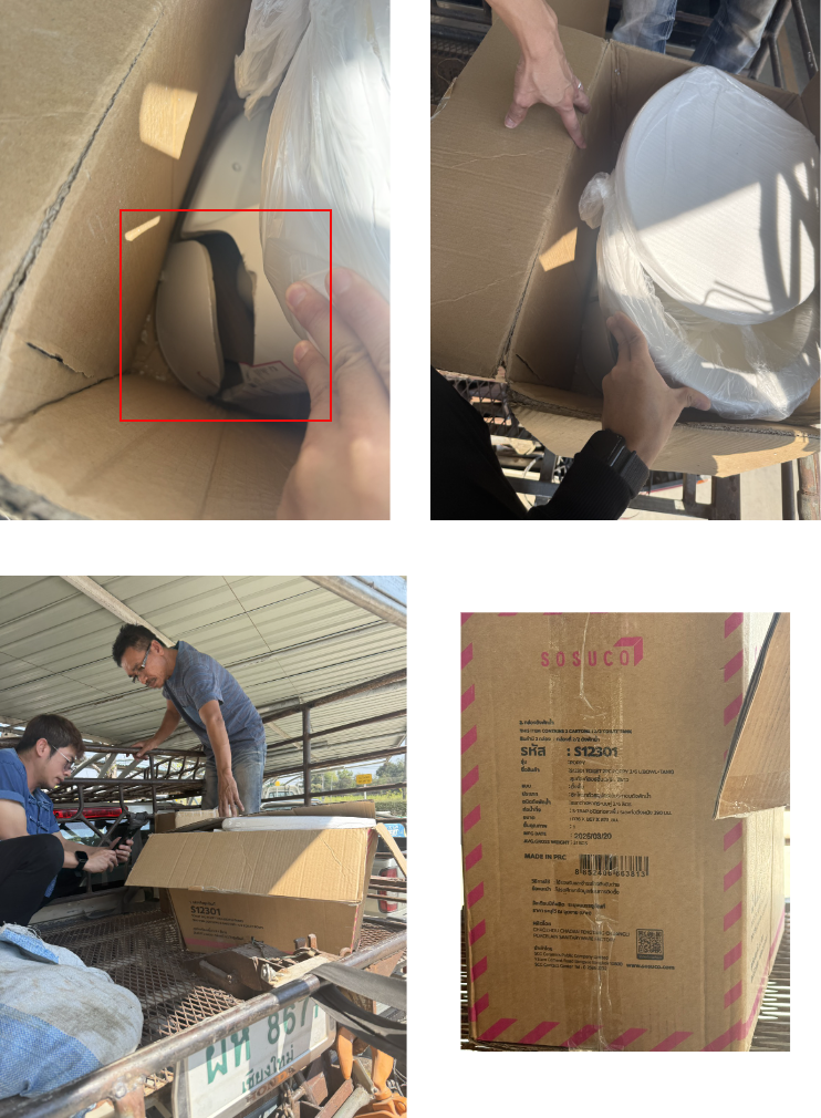 LP ได้รับแจ้งจากคุณภานุมาศ เสถียรปัญญากุล ตำแหน่ง PC COTTO วันที่ 06 กุมภาพันธ์ 2569 พนักงานแจ้งว่ามีสินค้าคืน คือ สินค้ารหัส 8852406663813 ชักโครกสองชิ้น 3/6 ลิตร SOSUCO S-12301 สีขาว จำนวน 1 ชุด ราคาชุดละ 1,490.-บาท รวมเป็นเงินทั้งหมด 1,490.-บาท แจ้ง LP เข้าตรวจสอบ