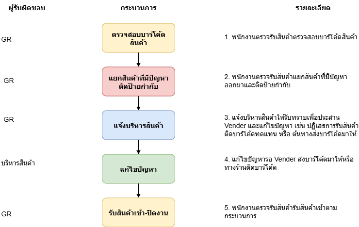 • บริษัทติดแทน: หาก Vendor ยินยอม บริษัทฯ ติดบาร์โค้ดใหม่และเรียกเก็บค่าใช้จ่ายจาก Vendor (3 บาท/ดวง)