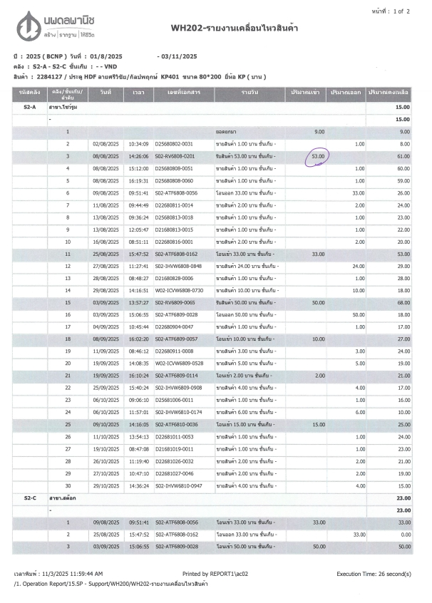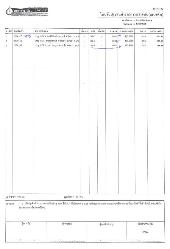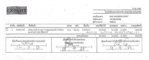 ชื่อ/สกุล/แผนก แผนกตรวจรับสินค้าสาขาสันกำแพง