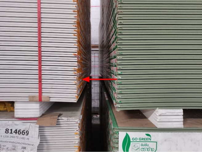 เว้นช่องระหว่างกองเพื่อให้ สามารถใช้รถฟอร์คลิฟต์หรือรถเข็นยกสินค้า ได้สะดวก